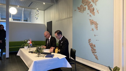Í sambandi við undirskrivingina vitjaðu varastjórin Rear Admiral Rhett Hatcher og deildarstjórin Jackie Sydenham. Fyri Føroyar luttóku stjórin á Umhvørvisstovuni, landstýrismaðurin Magnus Rasmussen og umboð fyri stovnar, sum hava við føroyska sjókortøkið at gera.